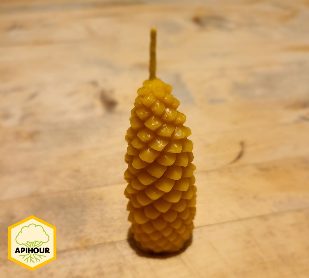 Bougie 100% cire d'abeille de notre production en forme de pomme de pin